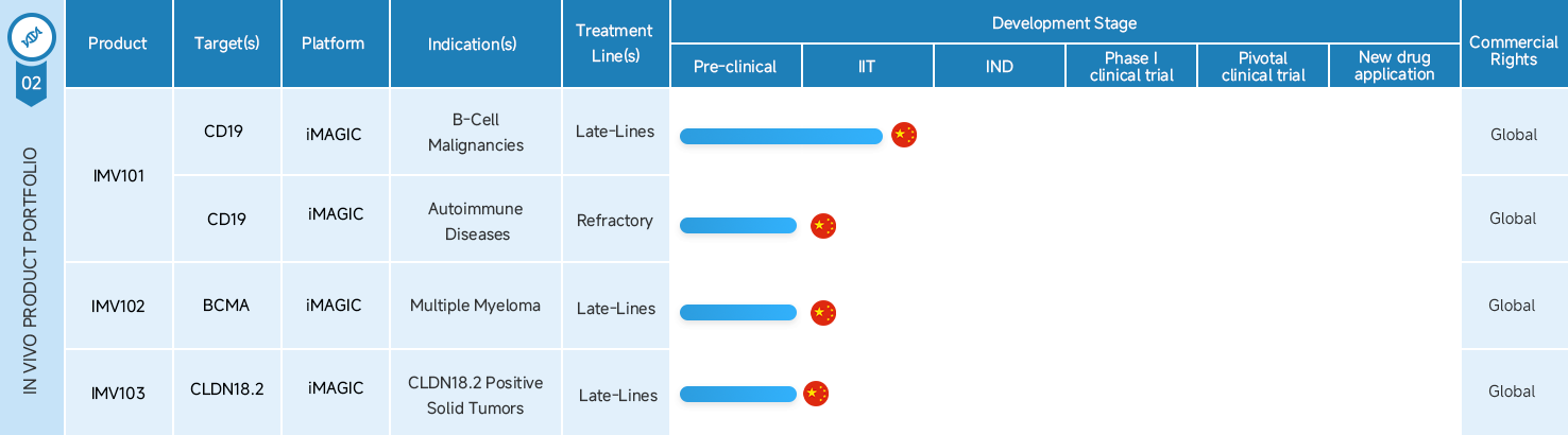 • 临床前验证:在血液肿瘤及实体瘤模型中实现稳定的 CAR-T 细胞生成并展现显著抗肿瘤活性,其中 CLDN18.2 靶向 CAR-T 在胃癌模型中表现出良好疗效和安全性